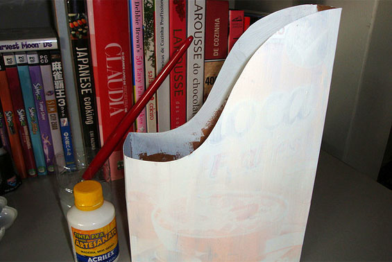 2º Passo: Decidiu continuar? Então passe uma demão de tinta em toda a superfície da caixa. Isso irá esconder os detalhes da embalagem e deixá-la pronta para o próximo passo.