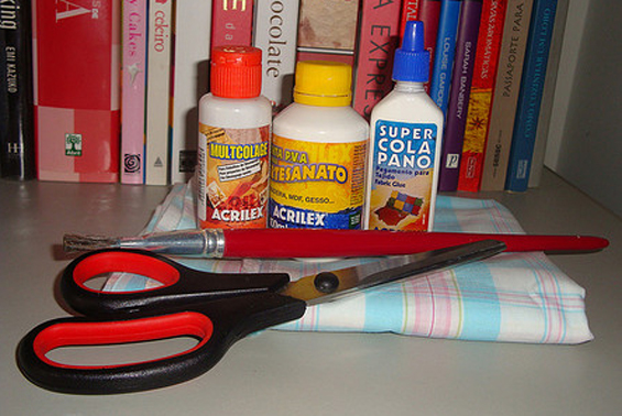 3º Passo: Chegou a hora de liberar a sua imaginação! Agora que já tem a base pronta, você já pode cobrir a caixa com os tecidos ou papel escolhido, fazer montagens com gravuras, patchwork, pinturas ou o que mais quiser. No exemplo abaixo, a =Mimi= usou cola para decoupagem para colar o tecido na caixa e cola própria para tecido para o acabamento.